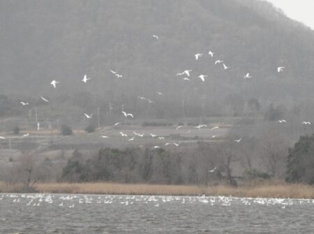 雪のため、鳥の種類はあまり観察できないと予想する中、カイツブリを除くカイツブリ類(カンムリ、アカエリ、ミミ、ハジロ)4種、ウミアイサ、シノリガモ、クロサギ、ヒメウなどをじっくり観察するできました。