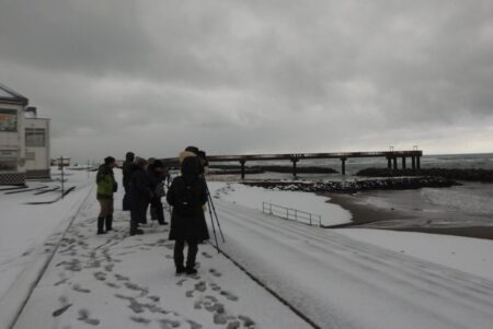 寺泊・出雲崎探鳥会は厳冬期に海鳥、カモメの仲間やカイツブリの仲間などを観察する探鳥会です。県内に一週間ほど居座った大雪のため、やむを得ず探鳥会の参加をキャンセルされた方もいる状況での実施となりました。