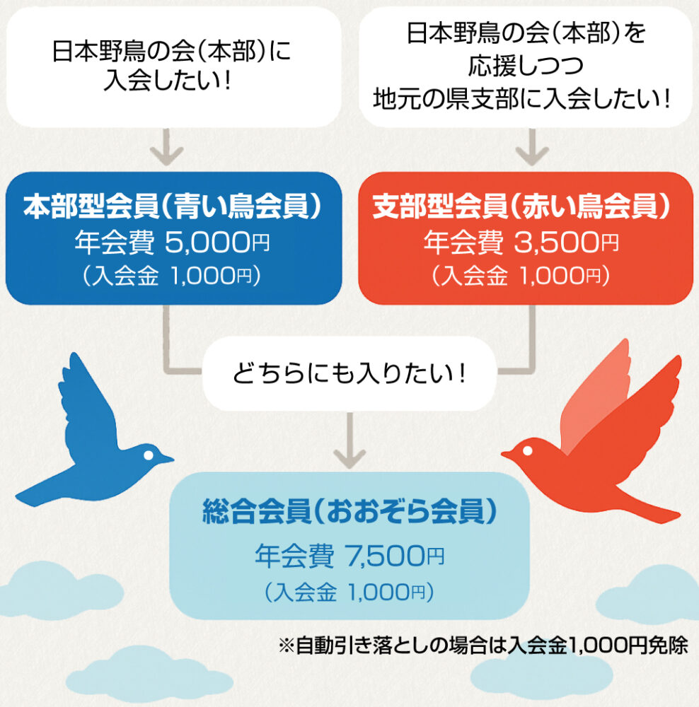(公財)日本野鳥の会(本部)に入会するAと、新潟県支部にのみ入会するBがありますので、以下をご確認ください。